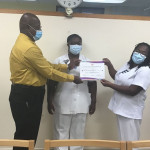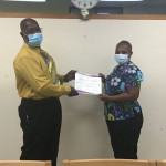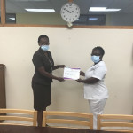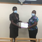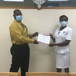 The certificates were presented by Director of Nursing Henderson Pinder and Nursing Officer Lisa Dodson of Ward C12 in March 2021 at the QEH due to COVID-19 restrictions.